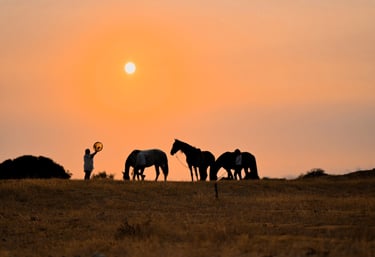 Bei Ouro da Luz steht nicht das Reiten im Vordergrund, sondern die wahrhaftige Begegnung zwischen Mensch und Pferd. Unsere Pferde sind keine „Nutztiere“, sondern weise Lehrer - verwurzelt in der Erde, klar im Jetzt. In ihrer stillen Präsenz spiegeln sie uns liebevoll, was in uns gesehen und geheilt werden will.