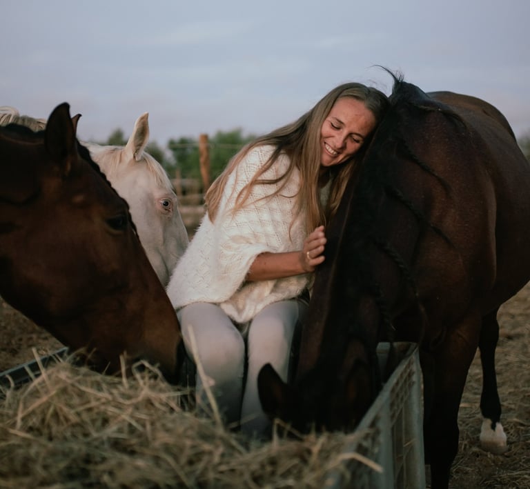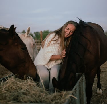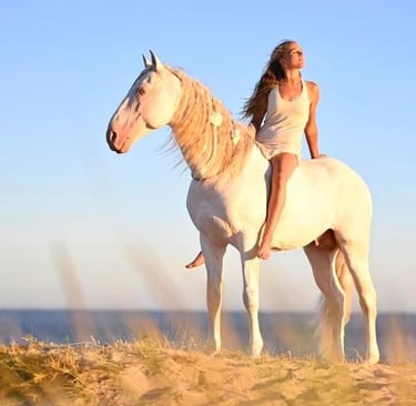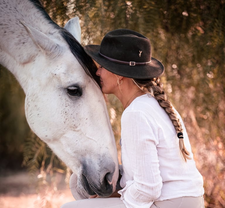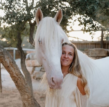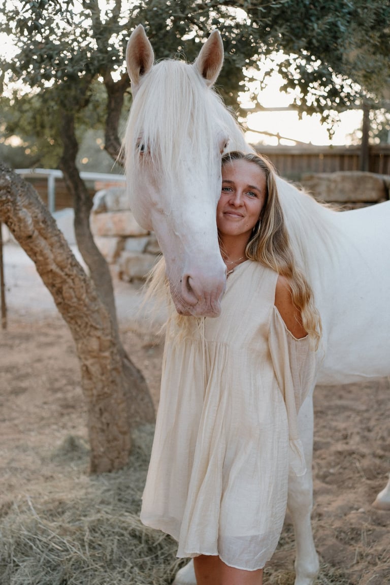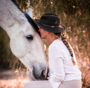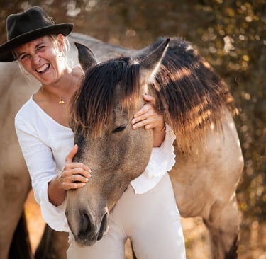 Die Faszination für diese majestätischen Wesen begleitete sie von Anfang an. Früh begann sie zu reiten und schon bald wurde sichtbar, dass sie die Sprache der Pferde wie selbstverständlich verstand - tiefer, klarer und liebevoller als viele Menschen um sie herum. Sie absolvierte viele wichtige Reitausbildungen und Prüfungen, wurde Trainerin, sammelte Pokale und Erfolge in der Dressurwelt.