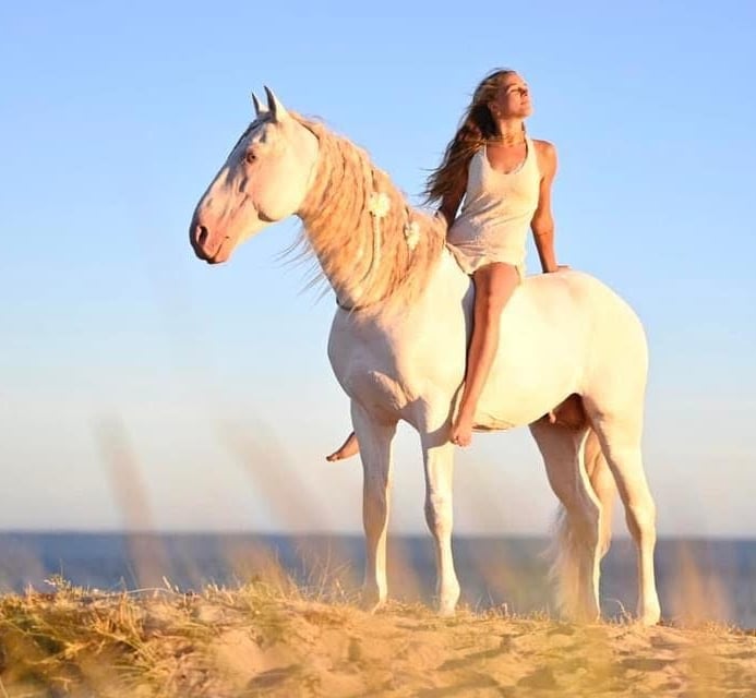 Mariella-Karina, 30 Jahre jung und das leuchtende Herz. Schon als Kind war Mariella auf eine besondere Weise mit Pferden verbunden. Sie ging wie ein Pferd, sie hüpfte wie ein Pferd und für sie war immer klar: